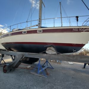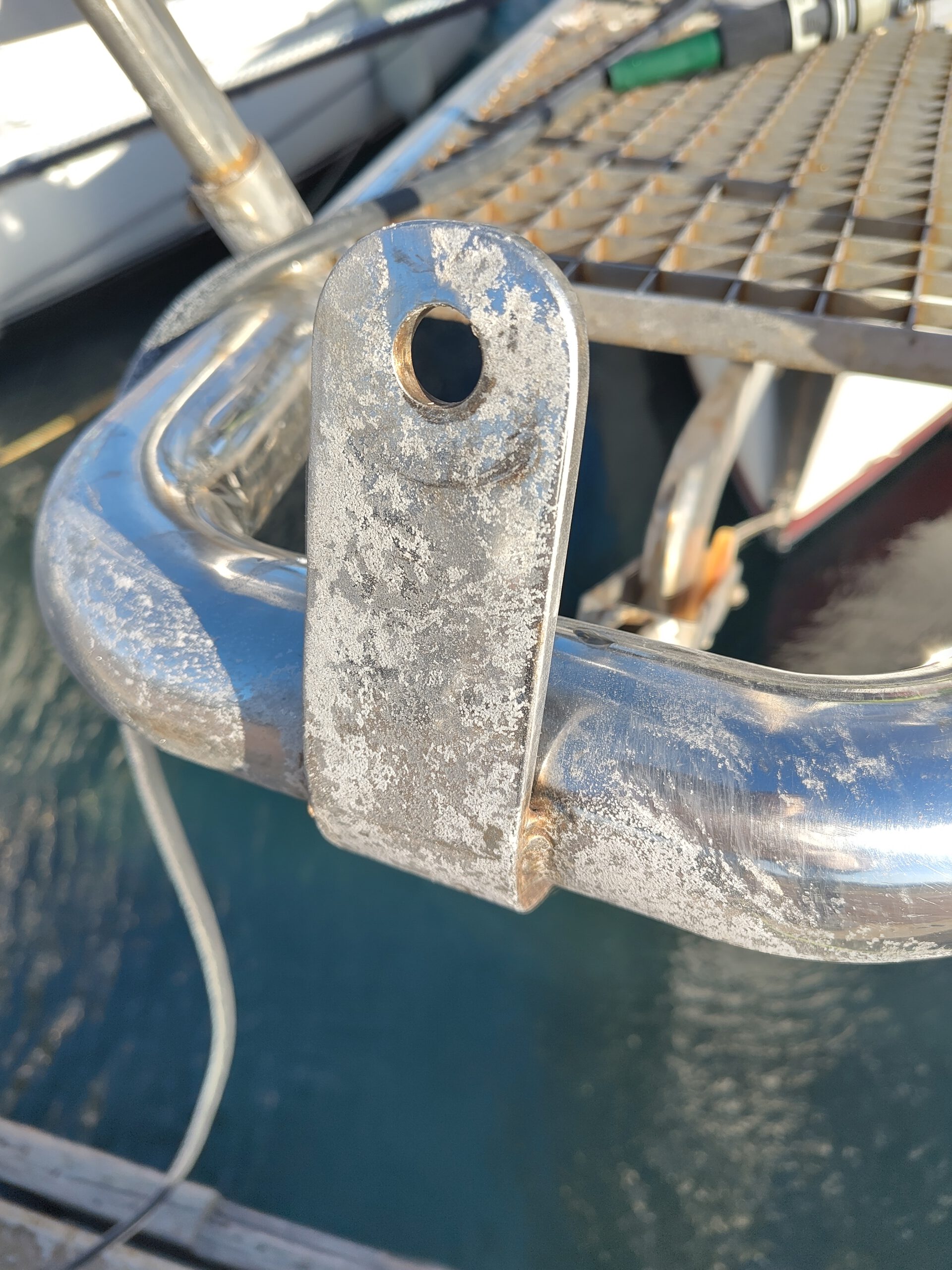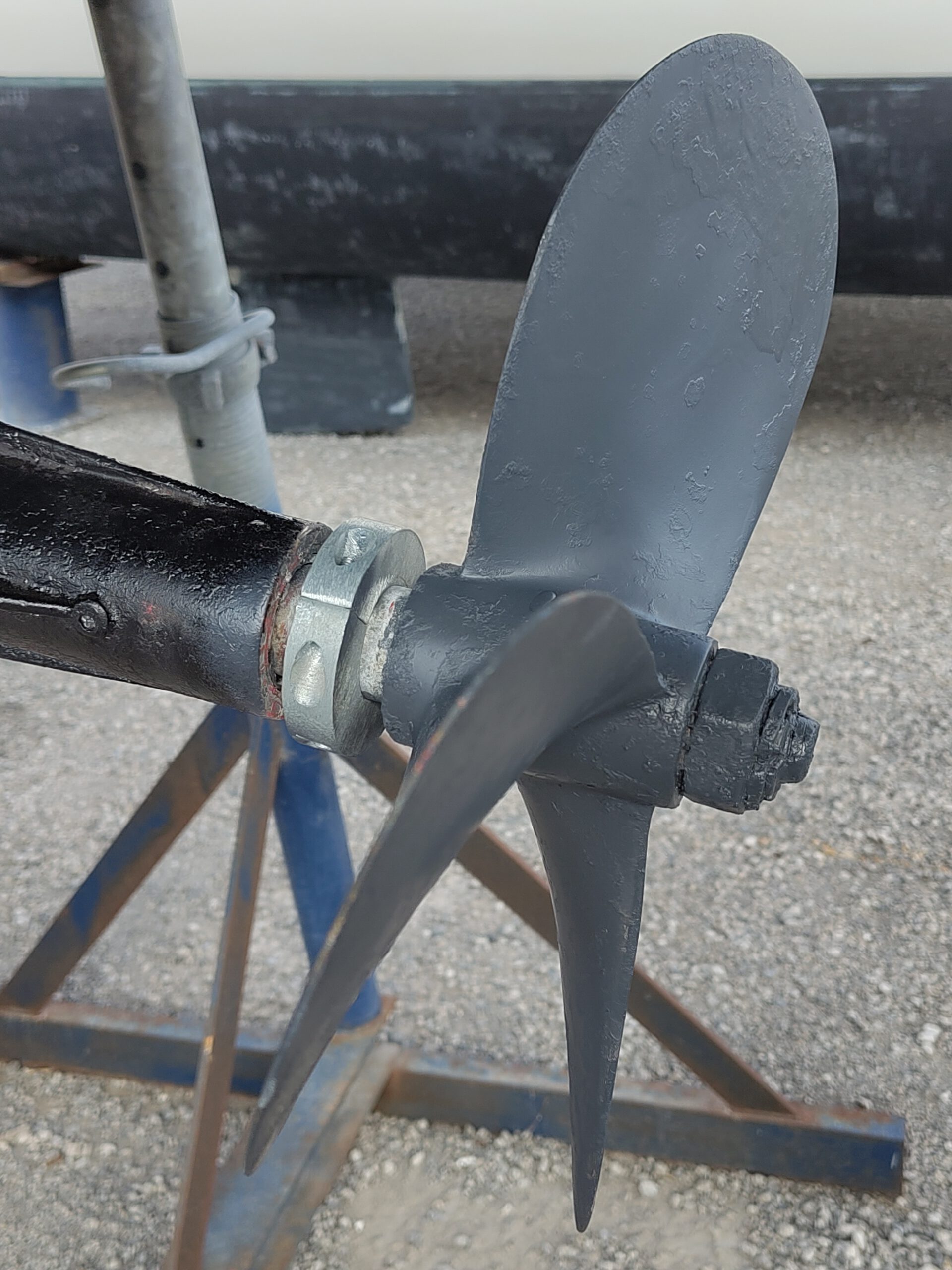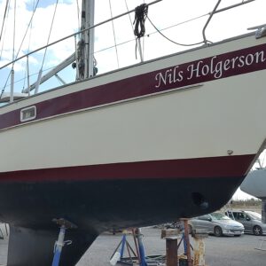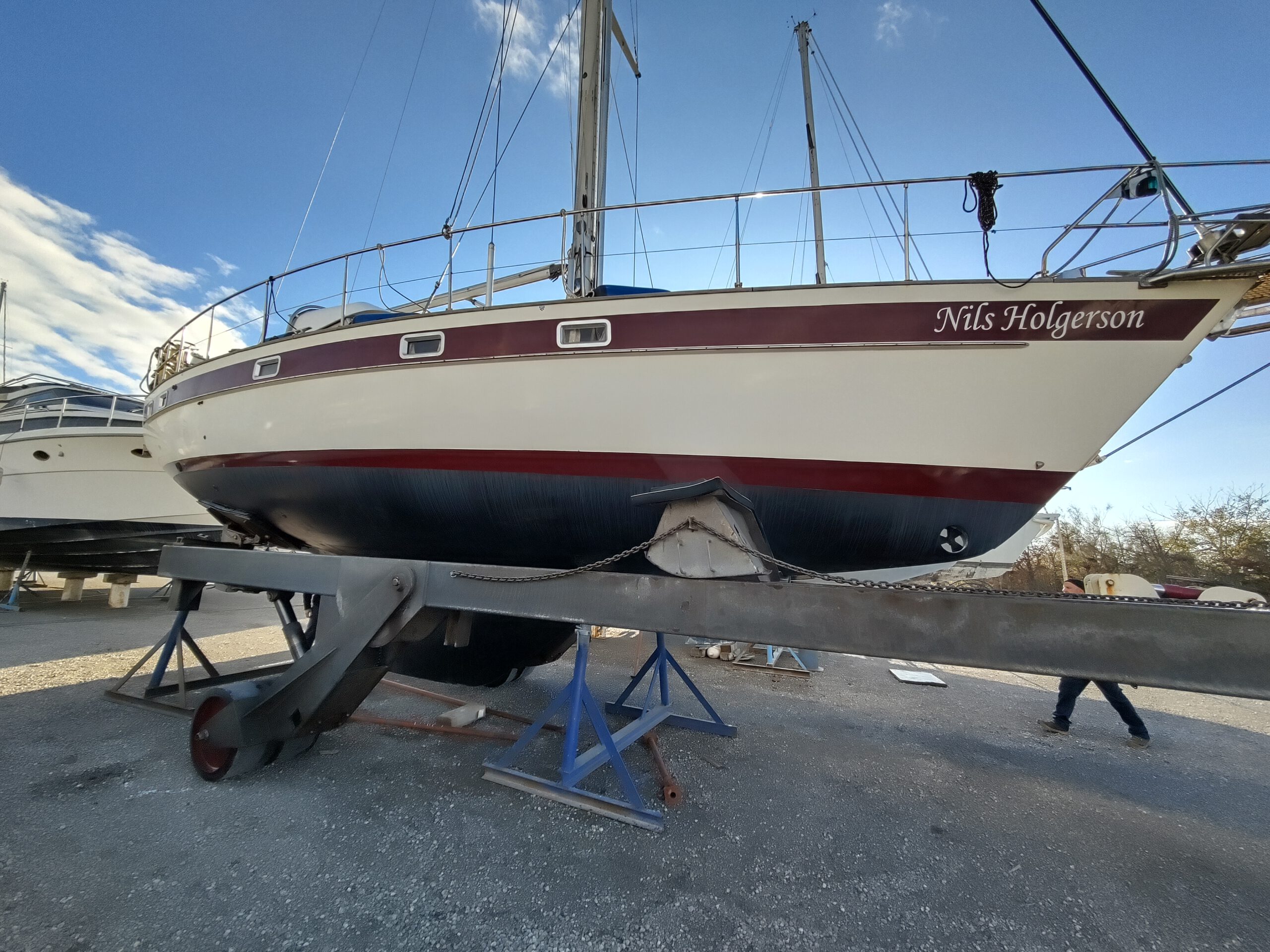 Da wir über Sommer viele Verpflichtungen in Deutschland hatten, nutzte ich eine Pause im September um dem Boot ein neues Antifouling zu streichen. Beim Auskranen hatten wir schon gekärchert und gesehen, dass das bisherige Antifouling noch bestens war. Also nur kurz anschleifen und 2 Lagen identisches Antifouling aufbringen. Der Wasserpass war nicht mehr schön und bekam 3 Lagen neue Farbe. Der Propeller neben Antifouling eine neue Anode. Diese war nach 15 Monaten fast nicht mehr existent!