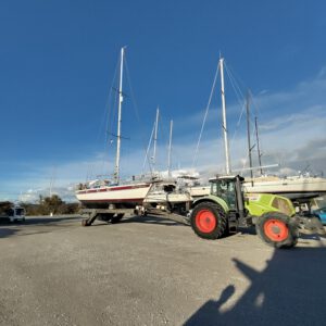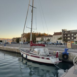 Den Sommer hatte das Boot an Land in Port Saint Louis du Rhone verbracht. Erstmals seit 5 Jahren war es damit für eine längere Zeit aus dem Wasser. Ein Chance auch mögliche Osmose zu sehen – zum Glück negativ.